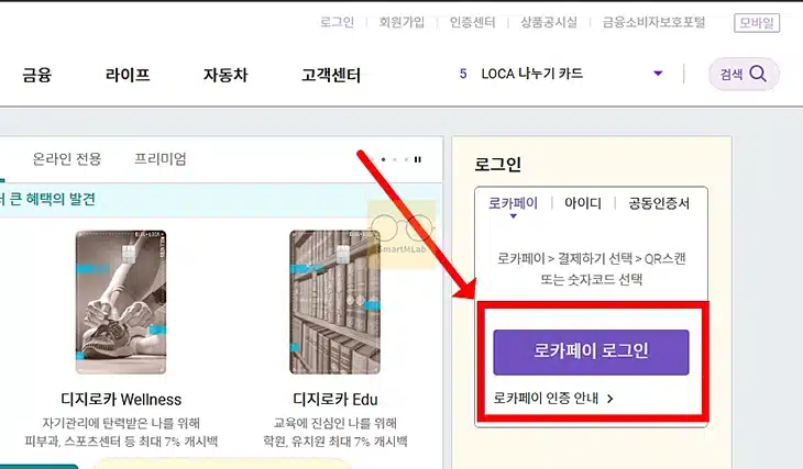 PC에서 롯데카드 로카페이 로그인하는 방법
