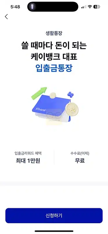 예를 들어 케이뱅크 앱을 실행한 후 상품가입 -> 예적금 -> 생활통장을 선택하고 입출금통장 만들기를 시도하면 됩니다. 만약 제한이 있다면 “OO월 OO일부터 개설 가능합니다”라는 메시지가 표시됩니다.